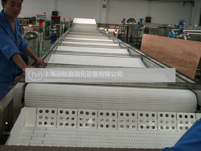 10、浸入式殺菌機對包裝物為非圓形的瓶、塑料袋、屋頂紙盒、罐頭盒等產品配置自動進出料機構,與自動化輸送生產線連接過渡順利;